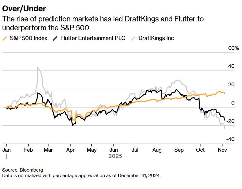 预测市场的崛起导致 DraftKings以及Flutter的股价表现不及标普500指数