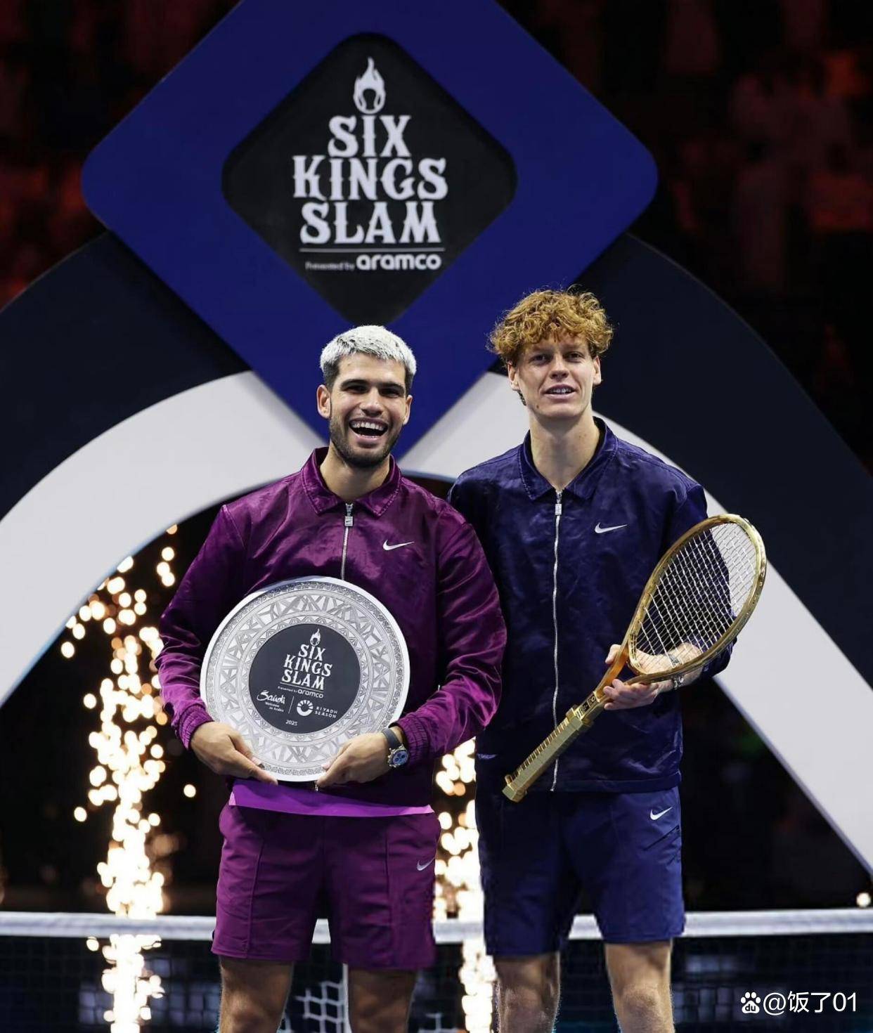 眼看着网上的骂声越来越大,这俩当事人也都是人精,赶紧出来找补。在沙特打完那场表演赛,俩人就开始了“商业互吹”模式。阿尔卡拉斯对着媒体一顿猛夸辛纳:“我兄弟打得太牛了,他逼出了最好的我,能跟他这样的对手比赛,太刺激了,回去我得玩命练球才行!”辛纳也马上接话:“能和卡洛斯(阿尔卡拉斯)这样的伟大球员同场竞技是我的荣幸,我们场上是对手,场下可是最好的哥们儿!”你看看,这话说得多漂亮,滴水不漏。一下子就把之前那种“为了钱抛弃比赛”的火药味给冲淡了,变成了“英雄惜英雄”的感人戏码,好像之前那些不愉快都烟消云散了。他们用这种方式告诉大家:我们关系好着呢,打表演赛也是为了共同进步,你们别想多了。