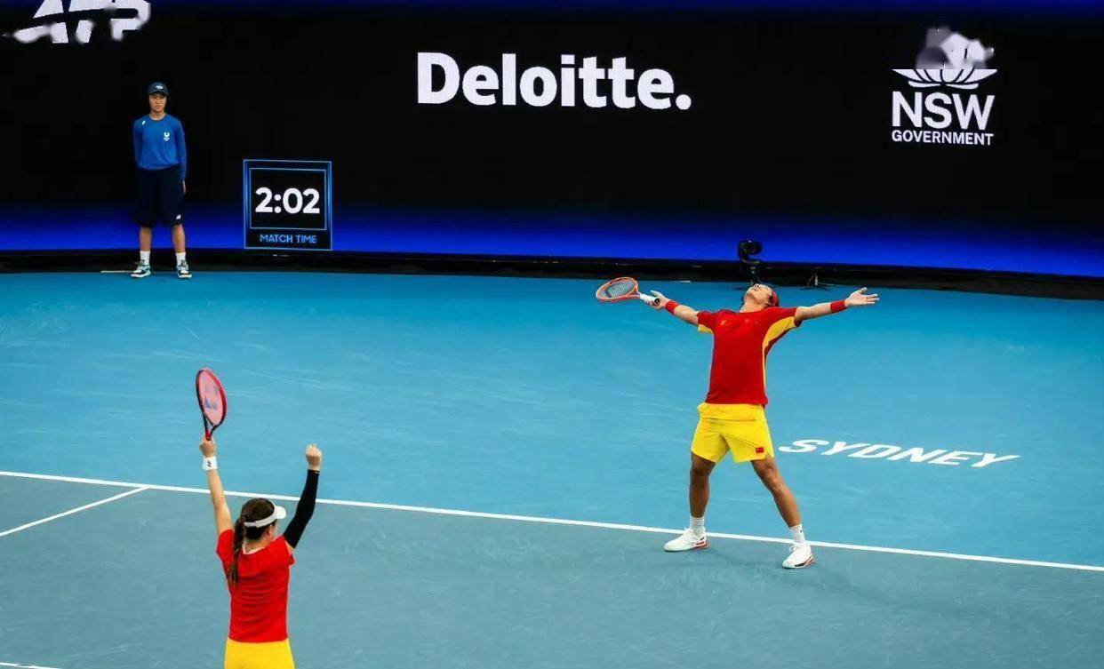 这个长达27拍的多拍相持后,比利时组合的失误率开始上升。 决胜抢十局,张之臻/朱琳在3-2领先时打出了一个教科书般的战术配合——张之臻中路发球后迅速上网,朱琳提前移动覆盖直线空档,迫使梅尔滕斯的小斜线回球出界。 这个得分让中国组合的士气达到沸点。