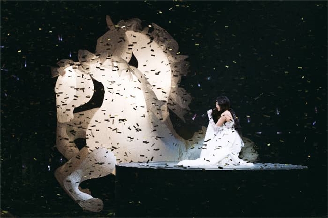 此次武汉跨年专场诚意满满,为迎接即将到来的农历马年,陈粒团队特邀法国视觉艺术家团队倾力打造特别舞台表演。在歌曲《历历万乡》的旋律中,两只充气马形艺术装置在一呼一吸缓缓舒展,将现代艺术表达与传统生肖寓意深度融合,既实现了中西方文化的巧妙碰撞,更寄寓着新年自由驰骋、勇往直前的美好期许。