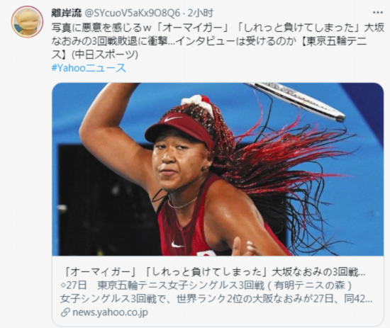 针对《东京中日体育》使用的图片,有日本网友评论称,“感受到了(对大坂直美)的恶意”。