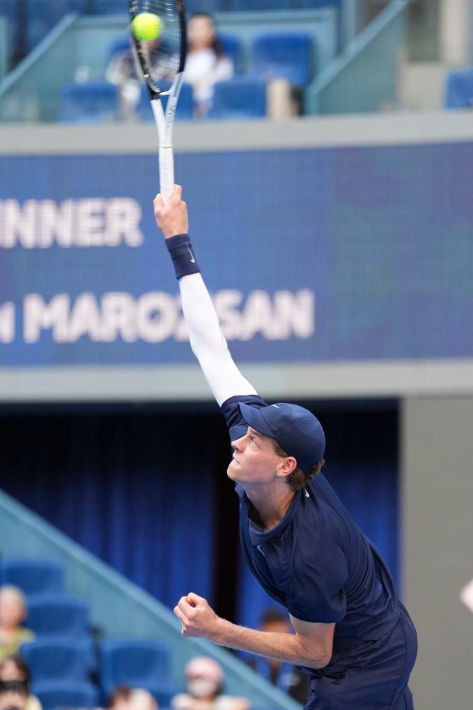 男单方面,世界排名第二的意大利名将辛纳在四分之一决赛中以6:1、7:5战胜匈牙利选手马洛桑,晋级半决赛。首盘比赛,辛纳迅速进入状态,马洛桑首局保发后,辛纳连胜6局以6:1先下一城。马洛桑在第二盘提升了发球质量,前八局双方战至4:4平。关键的第九局,马洛桑率先破发,5:4领先来到发球胜盘局。但辛纳在第10局送出“love game”(零封对手赢下一局)回破,将比分扳平。辛纳在成功保发后,再度送出“love game”完成破发,直落两盘晋级半决赛。