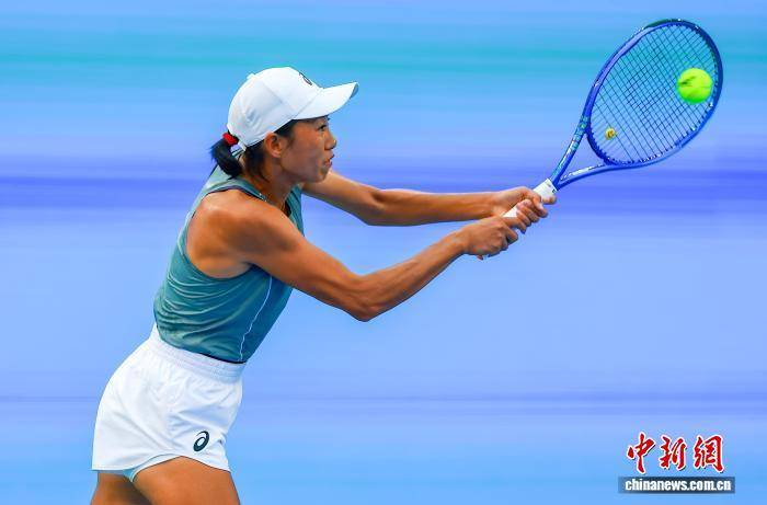 10月7日,中国选手张帅正在进行2025武汉网球公开赛女单首轮比赛。张畅 摄