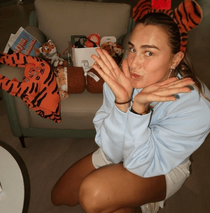 她分享的7张照片内容丰富,包括她抵达武汉时手举虎妞三冠标牌的画面,以及在武网赛场训练的场景。甚至连她的教练杜布罗夫也戴上了老虎耳朵发卡,加入了这场卖萌盛宴。